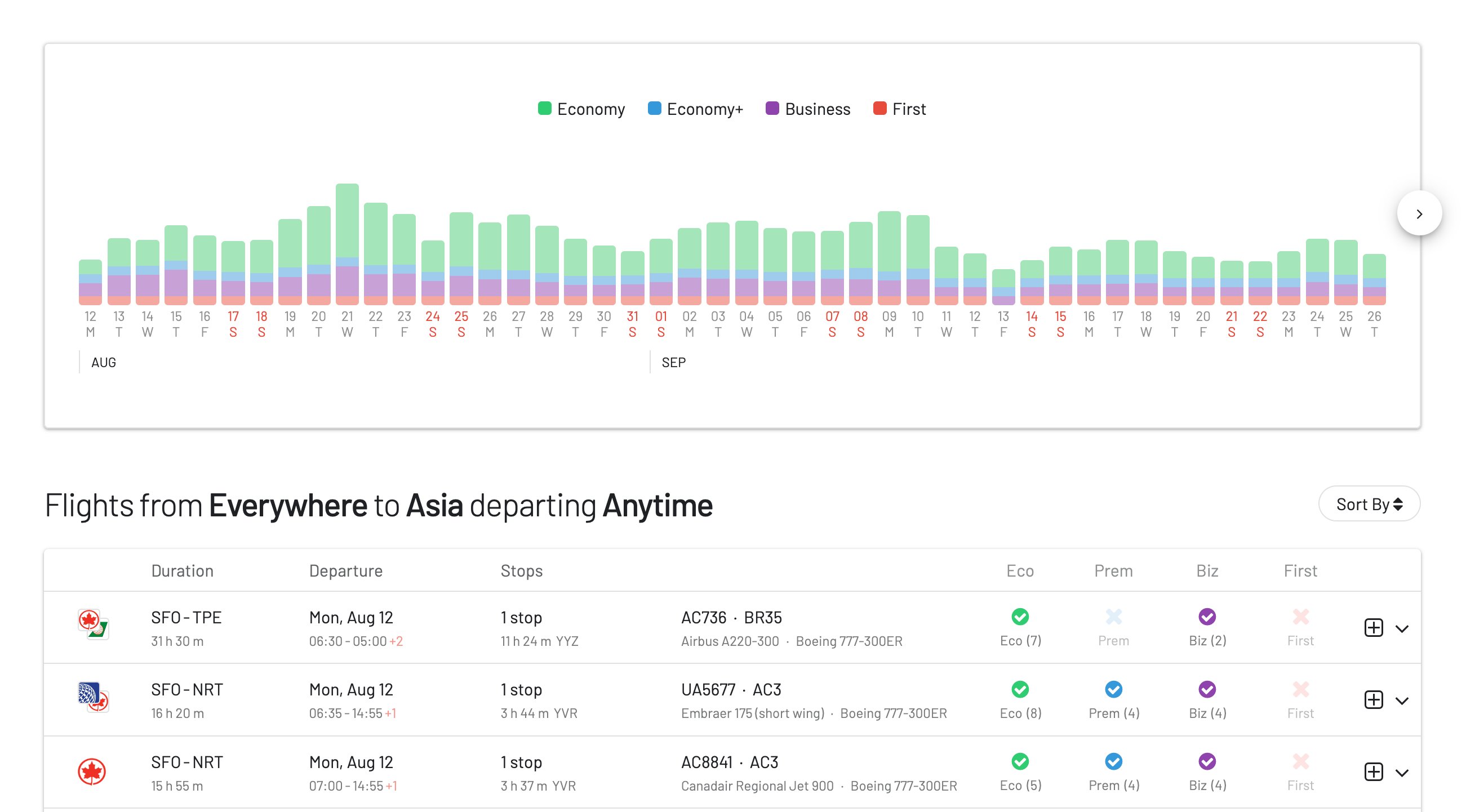 Awesome features and awesome website! Thanks to this new feature of prices and mixed cabins, it was much easier to find the trip I wanted, and just a few days after receiving this feature I bought return tickets for us to Asia! Super smooth!